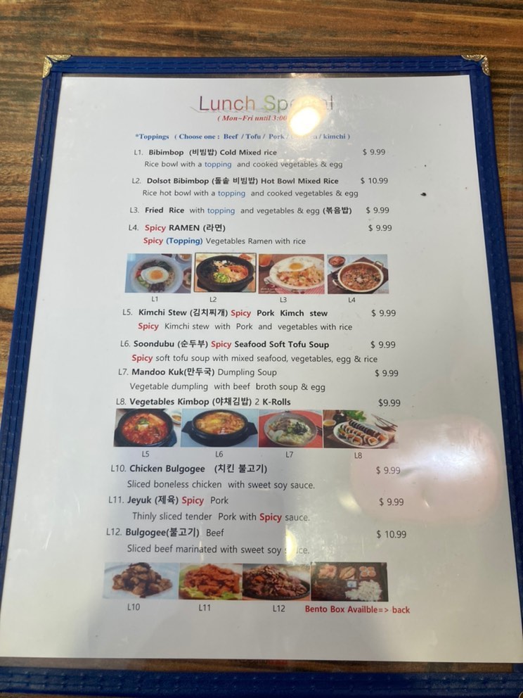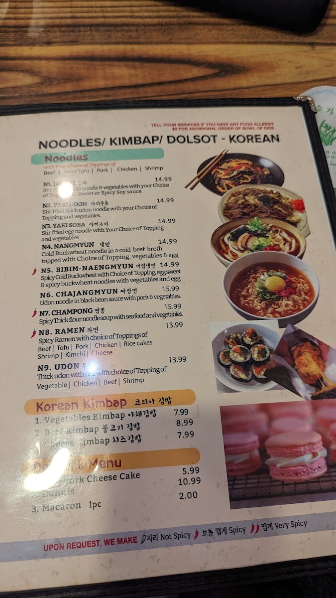 In addition to the noodle and rice dishes, the Bento Box menu offers an enticing selection, including Salmon Bento, Spicy Pork Bento, and the ever-popular Chicken Teriyaki Bento Box. If you're in the mood for something more traditional, the Spicy Pork Kimchi Stew and Rice Cakes & Dumplings Soup provide a warm, flavorful meal.